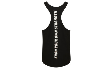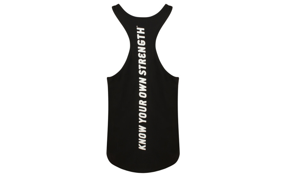 Komplett in schwarz gehalten und dazu ein sehr auffällig, gelbes und großes Golds Gym Logo mitten auf der Vorderseite des neuen Muscle Joe Slogan Premium Tank. Auf der Rückseite des Tank Tops kommt dann das absolute Highlight, nämlich ein massiver, weißer und sehr aussagekräftiger Schriftzug "Known Your Own Strength", welches soviel heißt, wie ,,Seine eigene Stärke zu kennen''. Dieser Spruch zieht sich einmal komplett vertikal über den Rücken und sieht einfach spitzenmäßig aus.