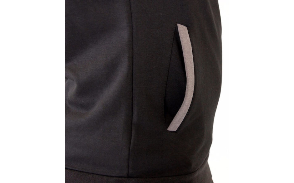 In den Taschen auf der Vorderseite kann man schnell und praktisch kleine Sachen verstauen. Aber sie sind nicht nur praktisch, sondern auch detailreich designed und mit einem grauen Farbakzent versehen. Der Reisverschluss, der sich ebenfalls farblich absetzt, verleiht dem Top einen lässigen Look.
