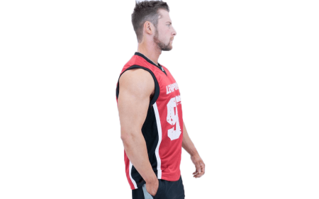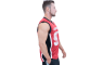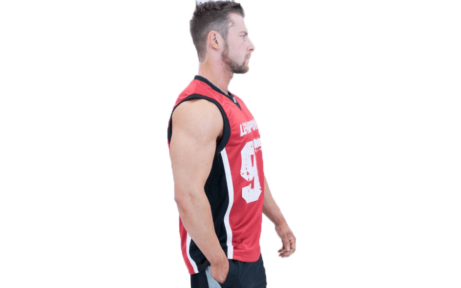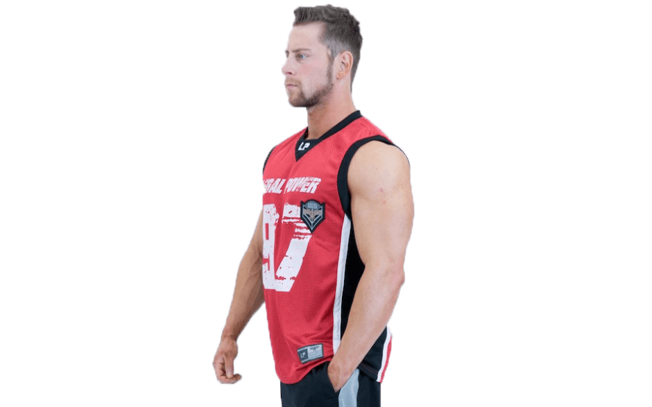 Durch die Farbkombination Rot, Weiß und Schwarz kommt der Basketball Schnitt so richtig zur Geltung. Die schwarzen Seitenränder werden sehr schön durch den weißen Kontraststreifen hervorgehoben. Die Ärmel und der V-Ausschnitt wurden ebenfalls farblich hervorgehoben und als Highlight befindet sich auch nochmal das Logo „LP“ am Halsausschnitt.