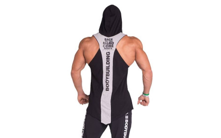 Auf der Brust des Regtops ist das Motto der Hardcore Linie aufgedruckt: Back to the Hardcore Roots. Die weiße Schrift schafft einen schönen Kontrast auf dem schwarzen Hintergrund. Auf dem Rücken ist ein hellgrauer Kontraststreifen aus klassischem grauen Jersey, der den Begriff BODYBUILDING in den Vordergrund rückt. Die Rückseite ist seitlich tief ausgeschnitten, wodurch die trainierte Rückenmuskulatur betont wird. Außerdem können Sie sich damit im Training uneingeschränkt frei bewegen.